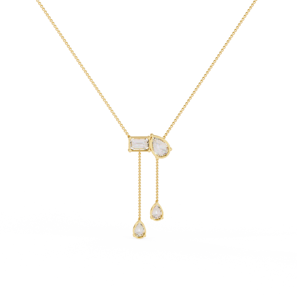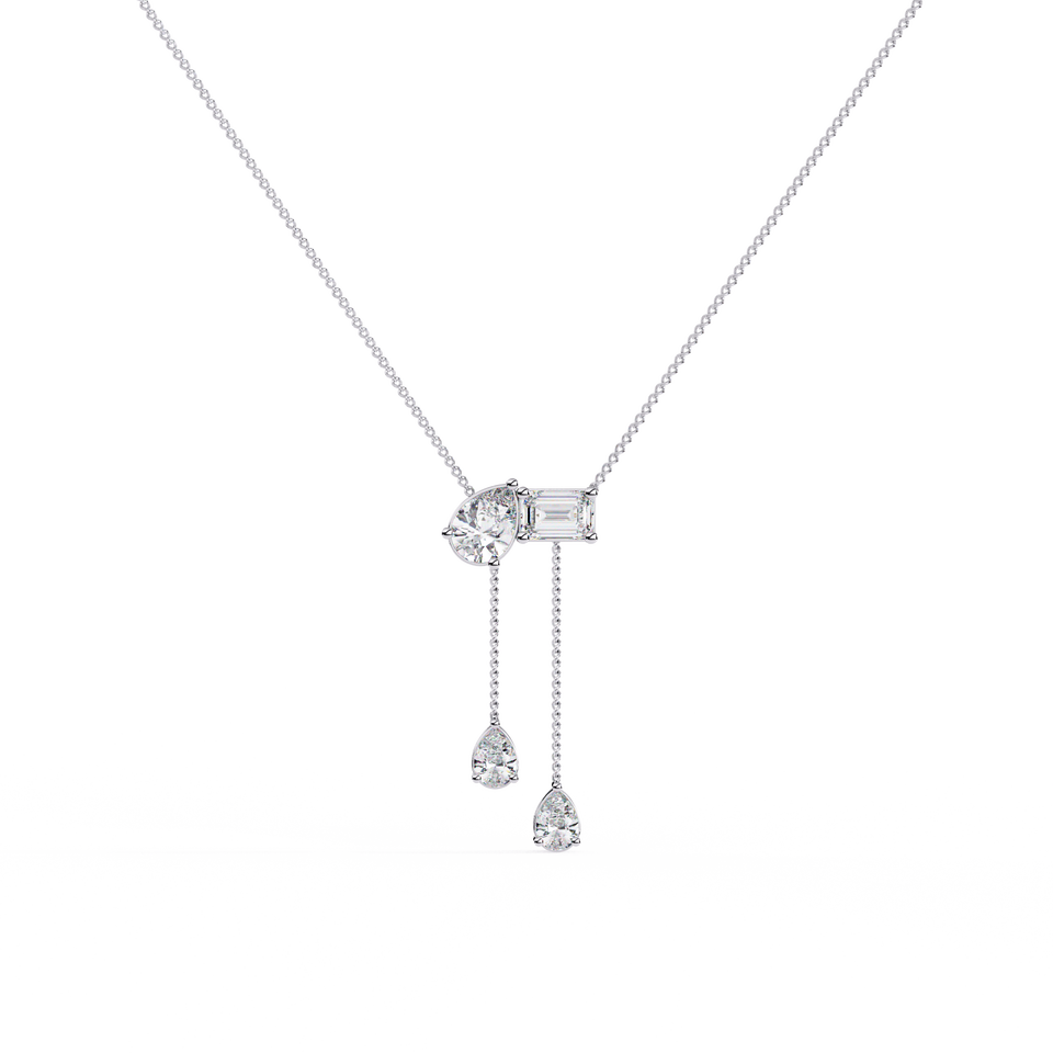 Collier minimaliste pour femme en or massif 14 carats avec pendentif romantique en diamant taille émeraude et diamant taille poire créés en laboratoire, idéal pour un mariage