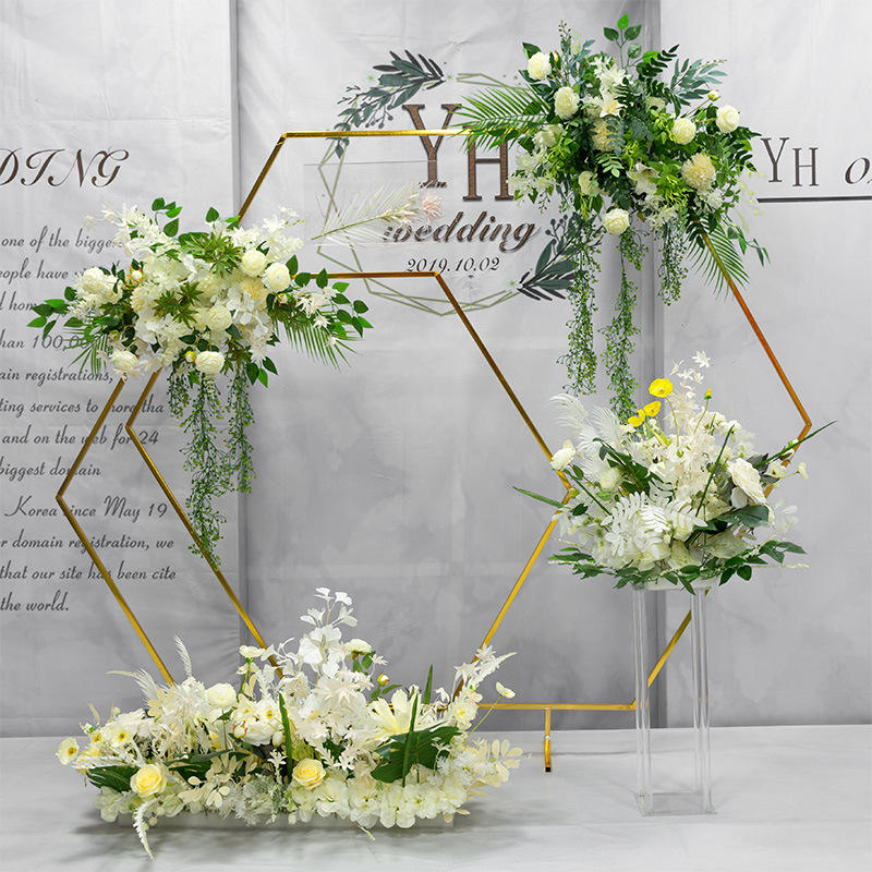 Arc romantique désherbage décoratif hexagonal en métal en fer forgé brillant doré fleur toile de fond support pour les fêtes mariages