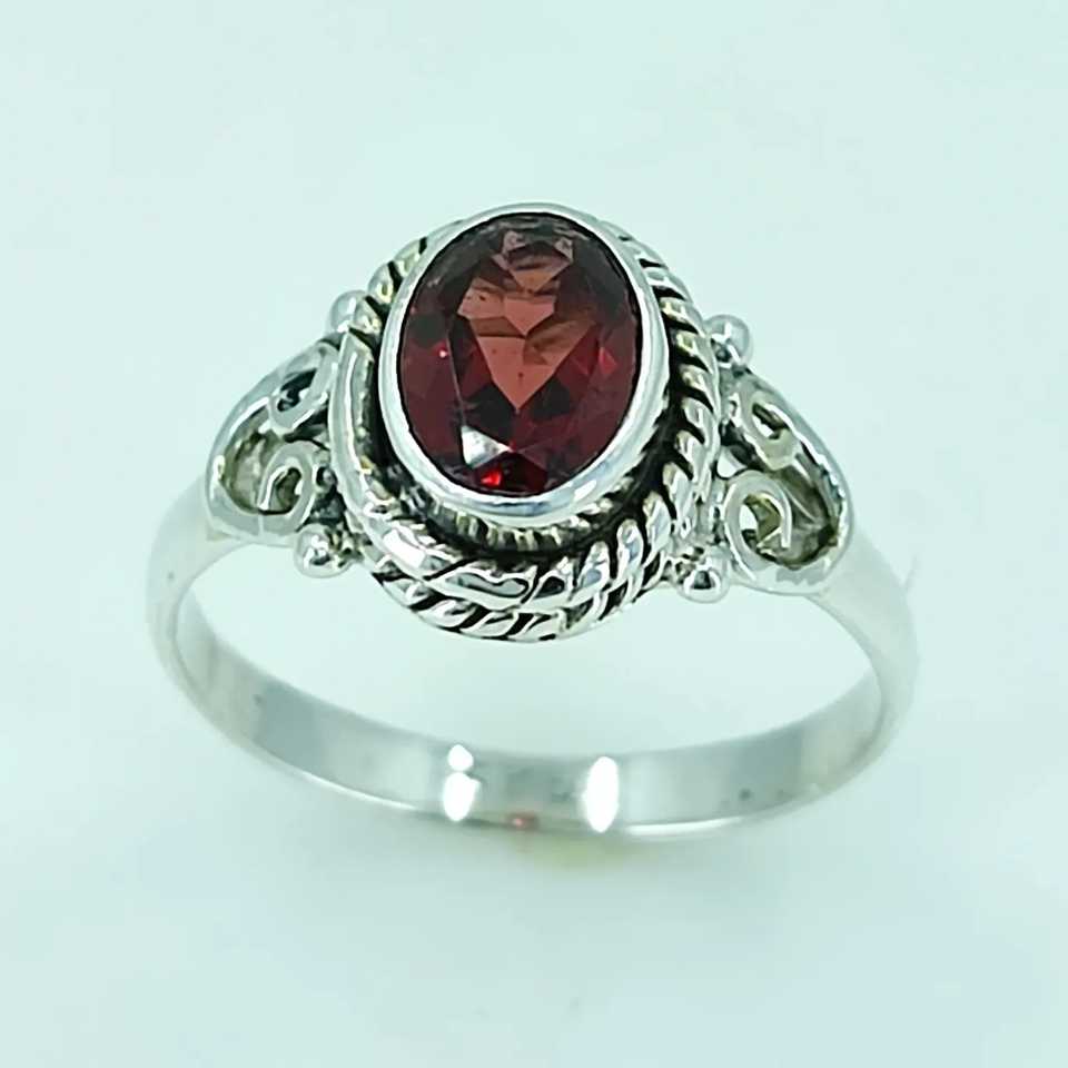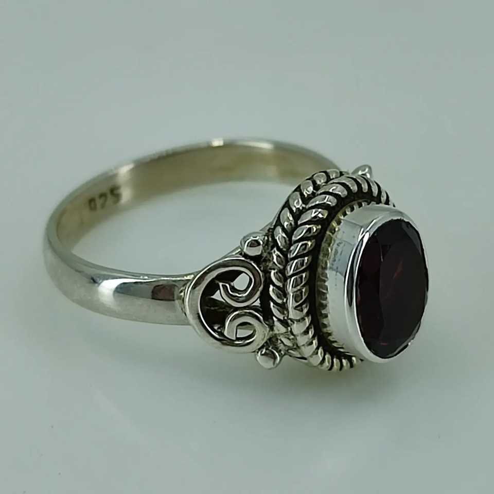 Bague artisanale ovale en grenat rouge style bohème romantique en argent sterling 925 – Cadeau idéal pour anniversaire ou anniversaire de mariage pour elle – Pierre de naissance de janvier