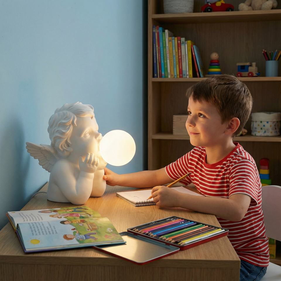 Lampe romantique en forme de chérubin à commande tactile, à brancher, blanc chaud, taille moyenne - Lumière d'ambiance idéale pour la chambre à coucher, décoration intérieure