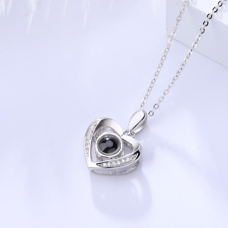 Romantique Couples Bijoux Kolye Argent Personnalisé Photo 100 Langues Je T'aime Projection Collier pour Femmes