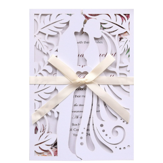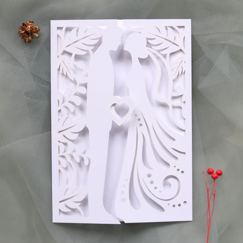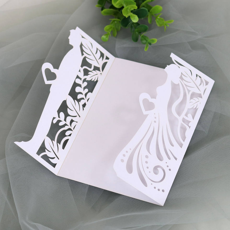 Carte d'invitation de mariage romantique en papier perlé écologique, motif creux marié et mariée, pour baby shower, anniversaire, Saint-Valentin