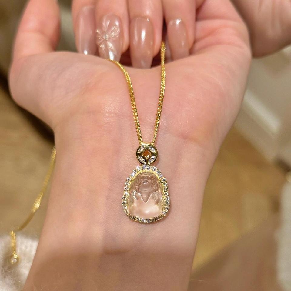 Romantic Girl's S925 Sterling Silver Plated 18K Gold Necklace Sparkling Pink Diamond Sapphire Pendant Fashion Pendants Charms