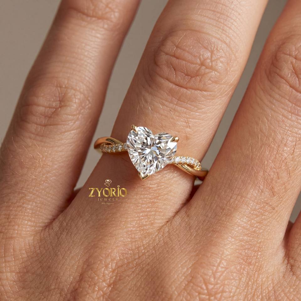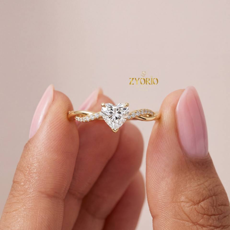 Bague romantique en or 10K-20K avec diamant cœur cultivé en laboratoire VS, bande pavée torsadée, tendance, pour fiançailles, mariage, cadeau pour elle