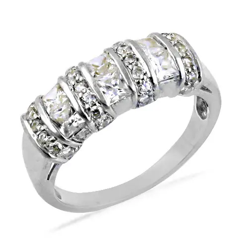 Romantic Silver Cubic Zirconia Women's Wedding Ring Geometric Emerald Cut with Rhodium Plating for Promises or Weddings