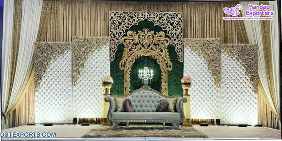 Romantique blanc tufté scène de mariage mariage asiatique en cuir cristal ajusté décor de scène panneau en cuir décoration de scène de mariage