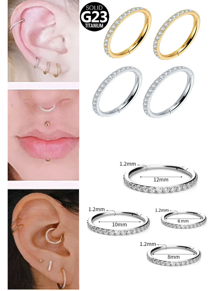 Anneaux segmentés romantiques en zircon, anneau de nez, anneau de septum, boucles d'oreilles créoles en titane, bijoux de piercing corporel Daith Lelix pour filles