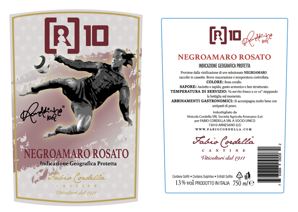 Ronaldinho [R]10 Italian Wine Negramaro Rose 0.750 Litres Bottles the Wine of Champion GVERDI Selection Made Italy Rose Wine