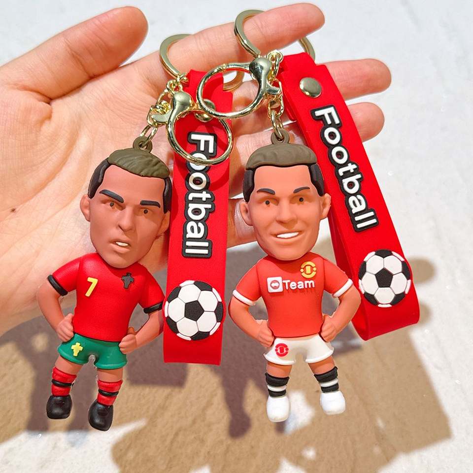 Porte-clés Ronaldo Vs pour le football, pendentif en silicone imprimé numériquement en forme de maillot de star, avec logo personnalisé, petit cadeau pour les fans