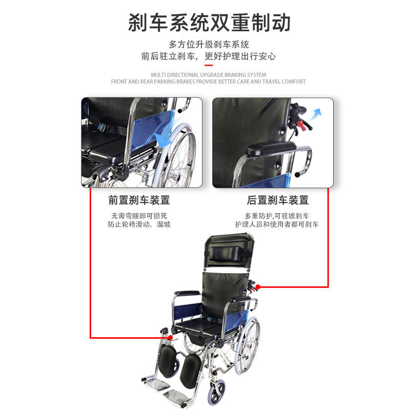 Fauteuil roulant Rong Jun Commode RJ-C609UGCJ léger, pliable, inclinable, dossier haut, pour personnes âgées