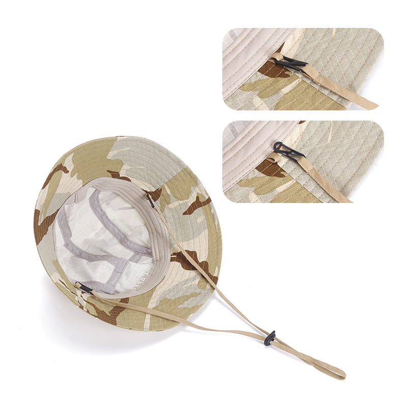 Chapeau Bob Camouflage RongGuang Nouvelle Collection Printemps-Été Tendance Personnalisé Coupe-Vent avec Cordon pour Hommes et Femmes