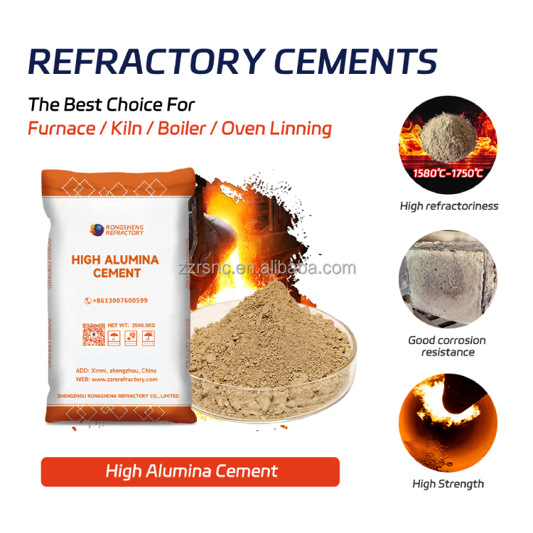 Ciment réfractaire haute température Rongsheng Ca70 Ca75 Ca80, ciment aluminate de calcium, ciment à haute teneur en alumine 85%