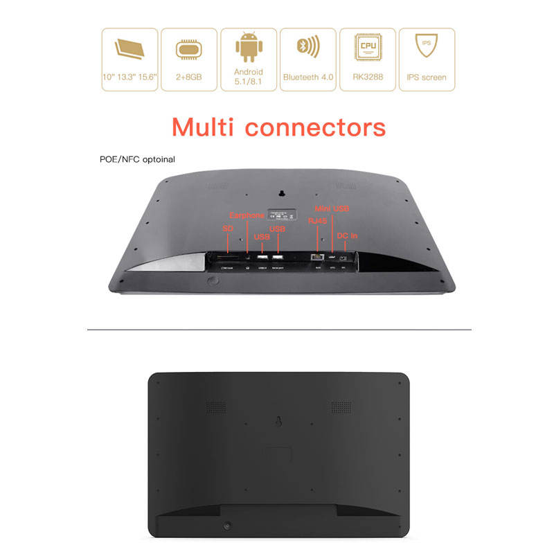 Emplacement pour carte, USB, Micro USB, USB, RJ45, POE, Prise d'alimentation, Écouteurs