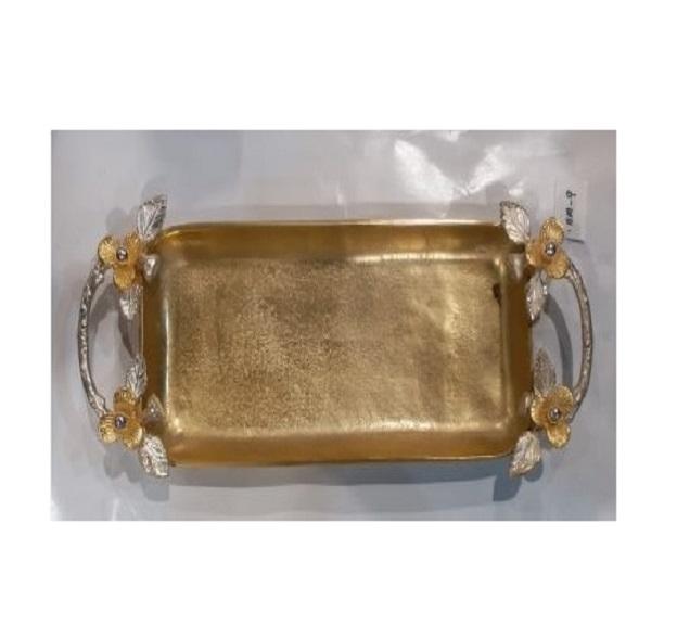 Plateau de service en laiton décoratif pour chambre Plateau de service en laiton rectangulaire personnalisé plaqué or martelé à la main