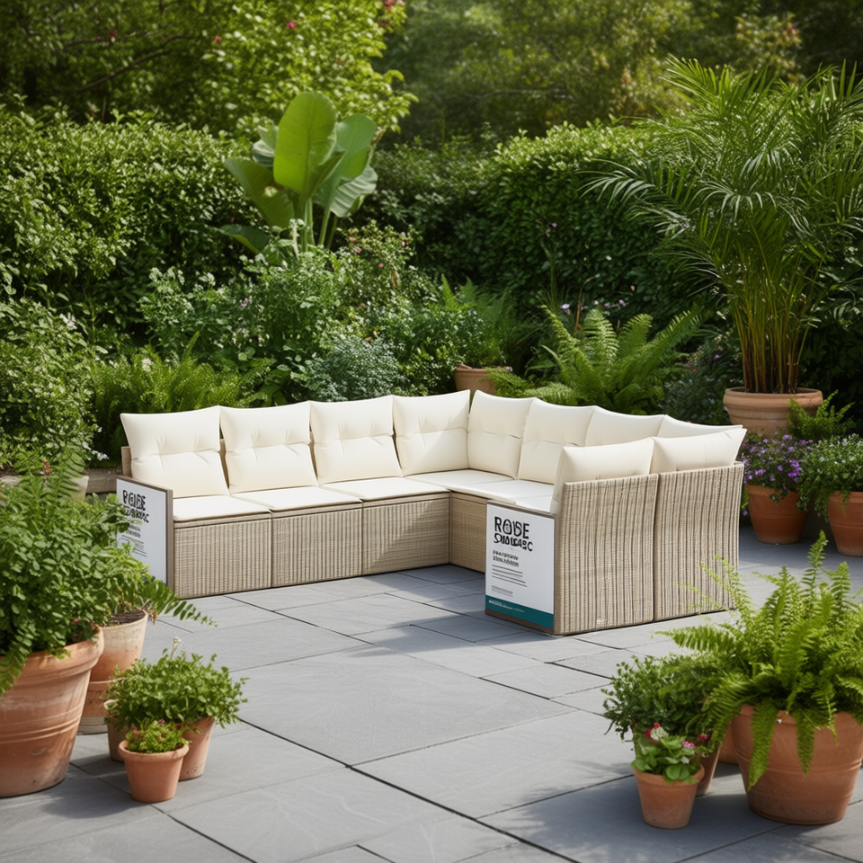 Ensemble de canapés de jardin en rotin beige Sanmoc, coussins en mousse haute densité, design contemporain pour l'extérieur, résistant à l'eau et aux UV