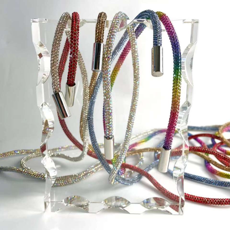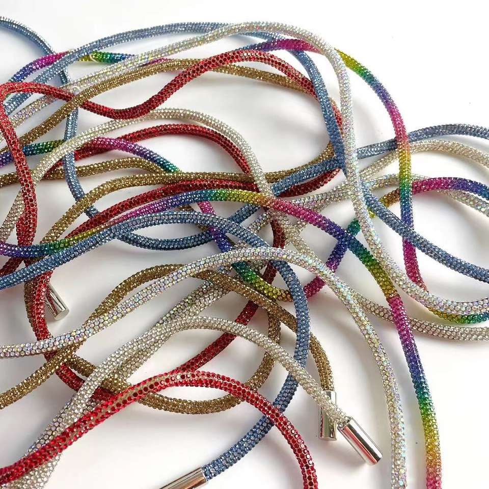 Corde Brillant Diamant Tube Chaîne Ronde Strass Tuyau En Caoutchouc Chaussure Dentelle Strass À Capuche Corde