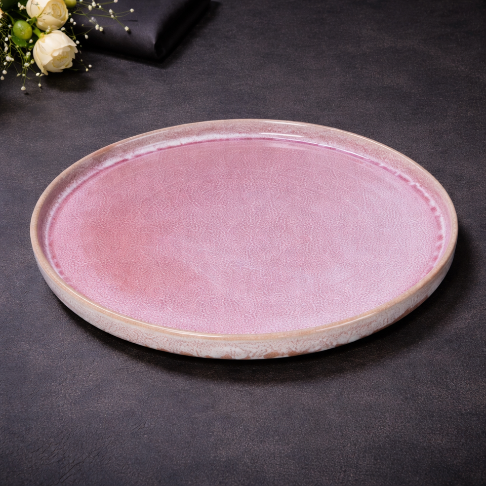 Assiette à dîner en céramique texturée Rose Blush, finition à pois subtils, profil moderne et fin, construction durable pour une mise en scène de table contemporaine