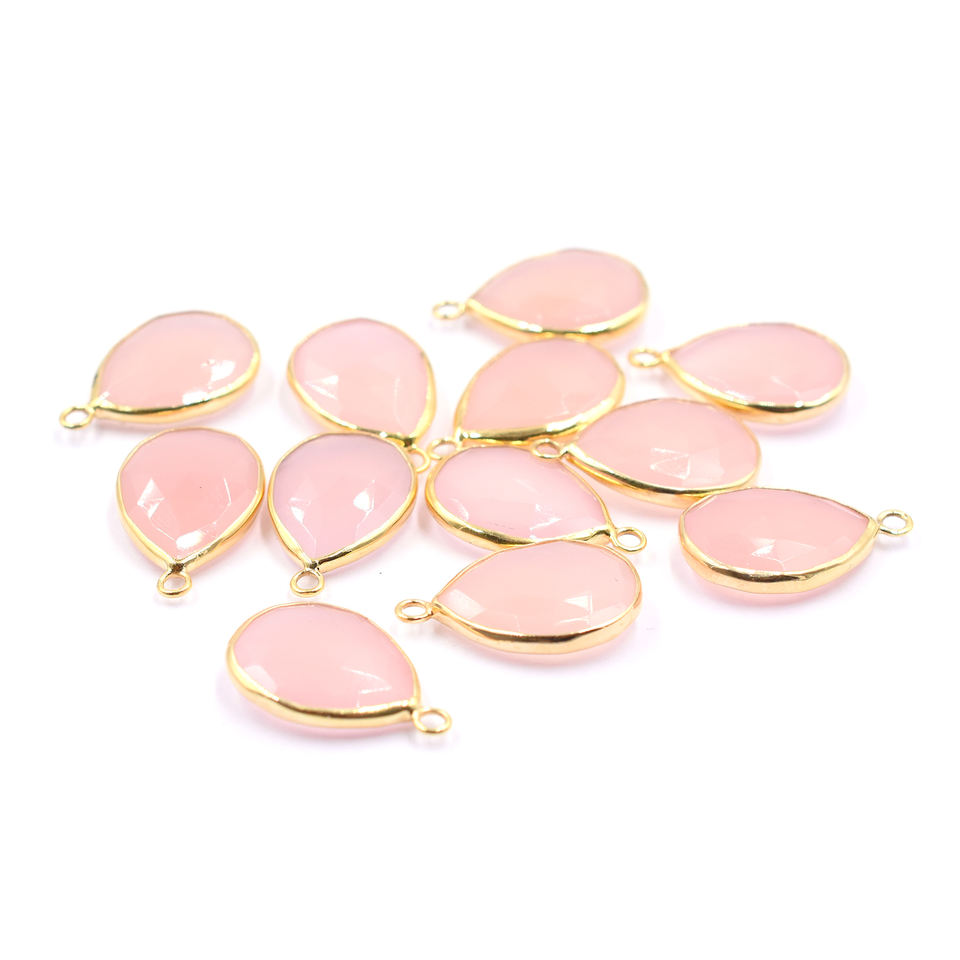 Nom du produit:Pendentif plaqué or avec lunette en argent en forme de poire en calcédoine rose