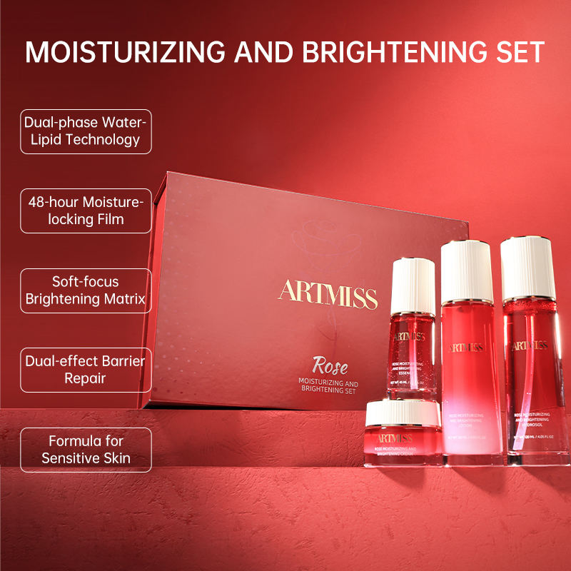 Ensemble complet de soins du visage à la rose, éclaircit le teint, réduit les rougeurs, hydratation intense, réparation apaisante de la barrière cutanée, ensemble de soins de la peau
