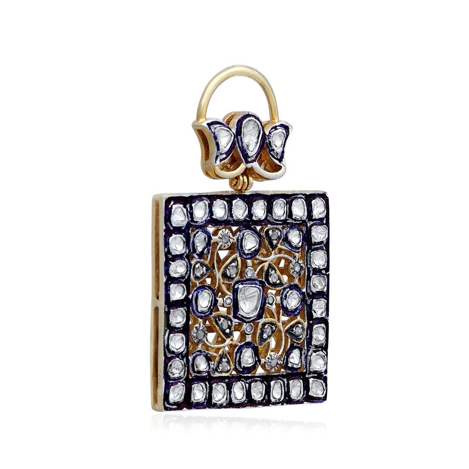 Rose Cut Polki Diamond Jaune Vermeil Argent 925 Fait à la Main en Forme de Carré Vintage Pendentif Bijoux en Gros