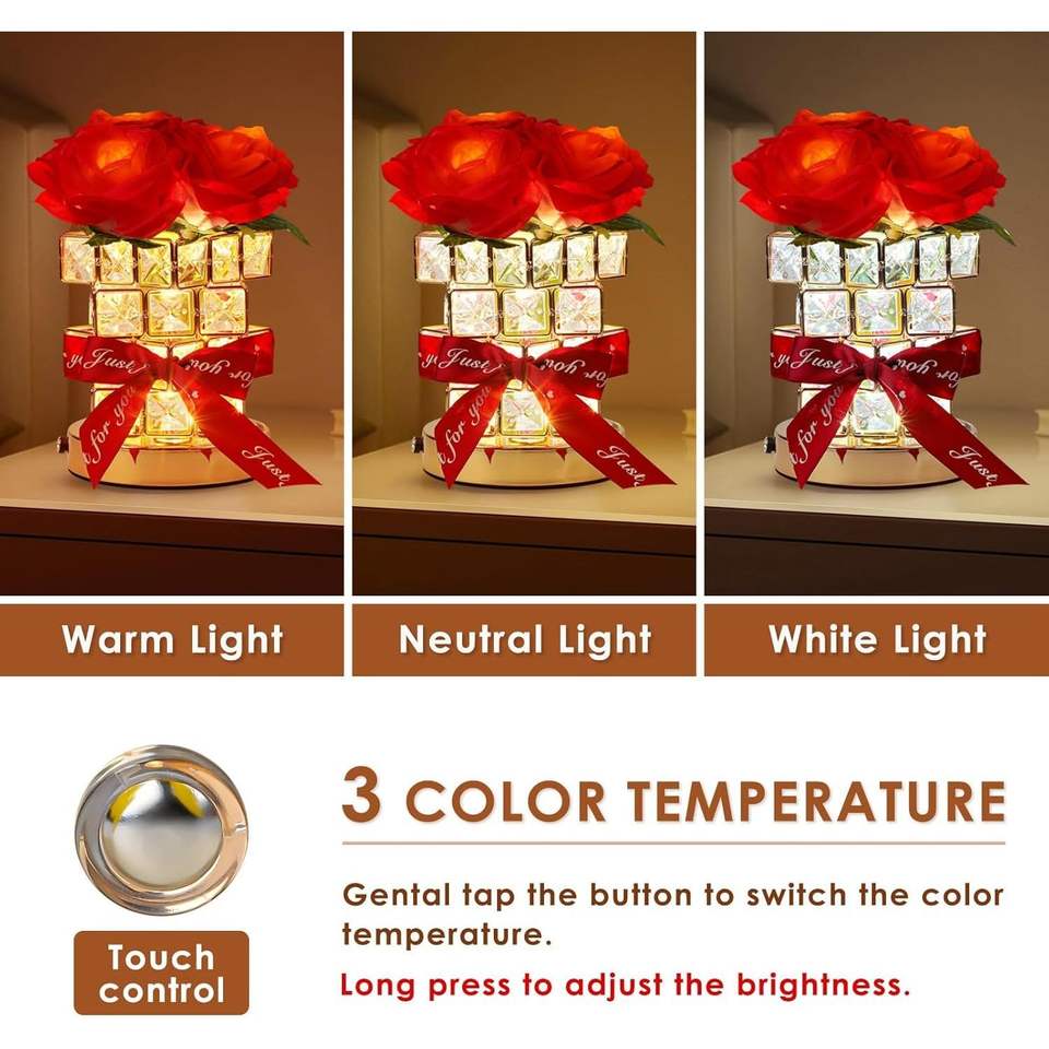 Lampe de table en forme de rose, petite veilleuse pour la cuisine, alimentée par piles, cadeau pour la fête des mères, cadeau pour petite amie, fleurs artificielles de table