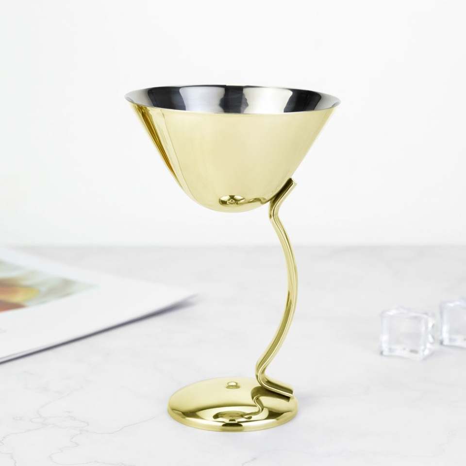 Verres à pied en acier inoxydable légers et résistants aux chocs, couleur or rose, 150 ml (5 oz), pour cocktails, champagne et vin