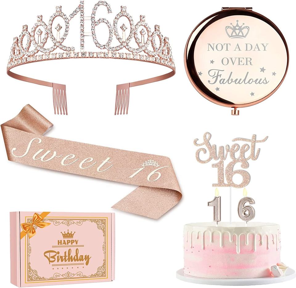 Rose Gold 16th Girl Birthday Party Decoration Sweet Crown Cake Toppers Sash 21th 40th Age Etc Birthday Gift for Girl