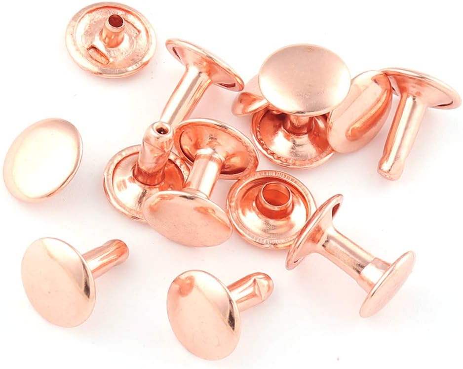 Rivets à double capuchon en or rose, boutons métalliques ronds, rivets rapides, clous pour sacs à main, chaussures, ceintures, artisanat du cuir, kit de bricolage