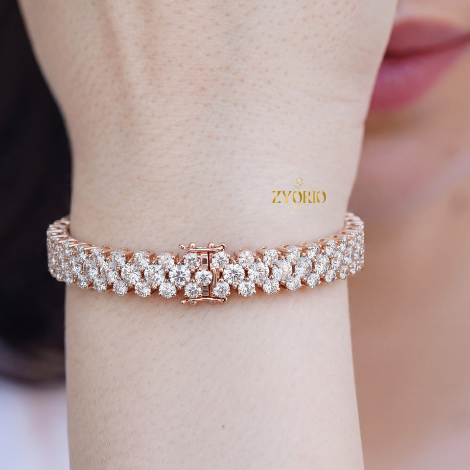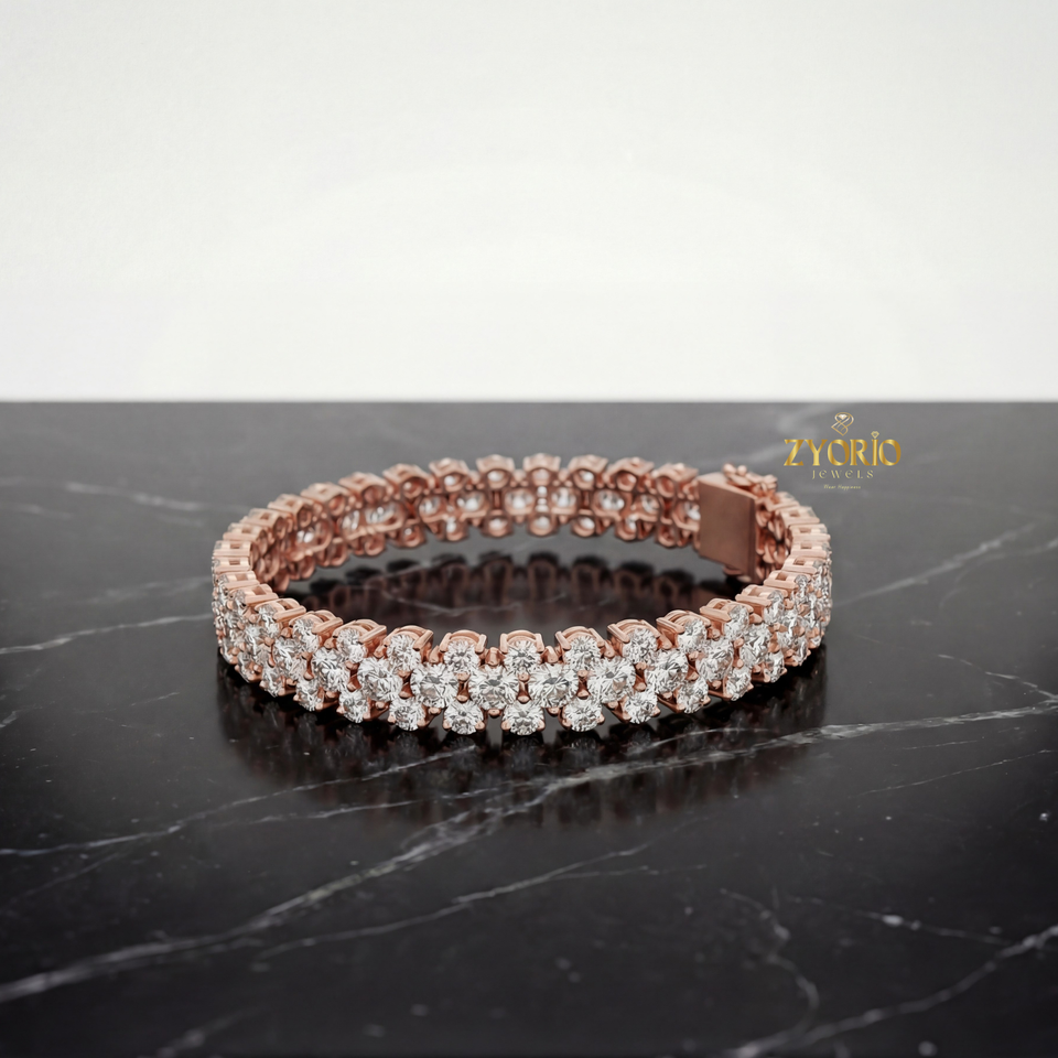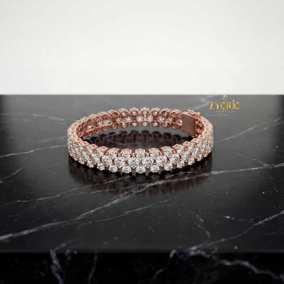 Bijoux élégants et luxueux pour femmes en argent sterling rose doré, avec deux rangées de diamants cultivés en laboratoire, cadeau pour un anniversaire