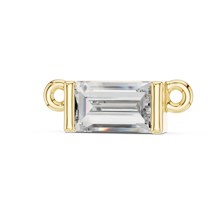 Connecteur en or rose avec diamant de laboratoire taille émeraude, composant minimaliste pour la création de bijoux, pièce de rechange pour la fabrication de bijoux sur mesure