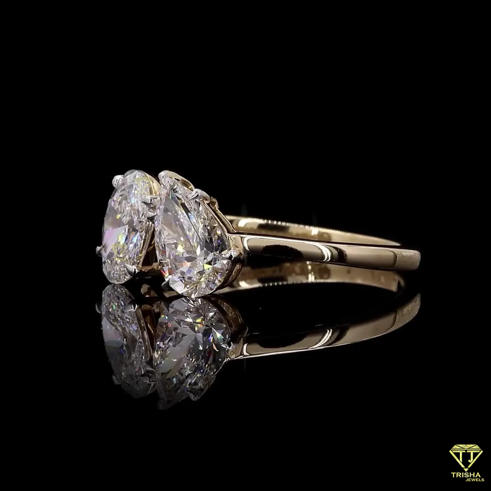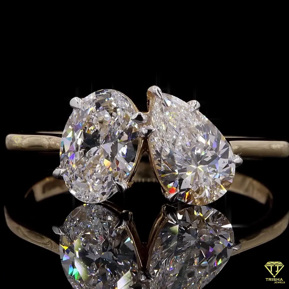 Finition or rose plaqué rhodium deux pierres de laboratoire bague en diamant poire taille ovale cluster conception mariage élégant bijoux fins