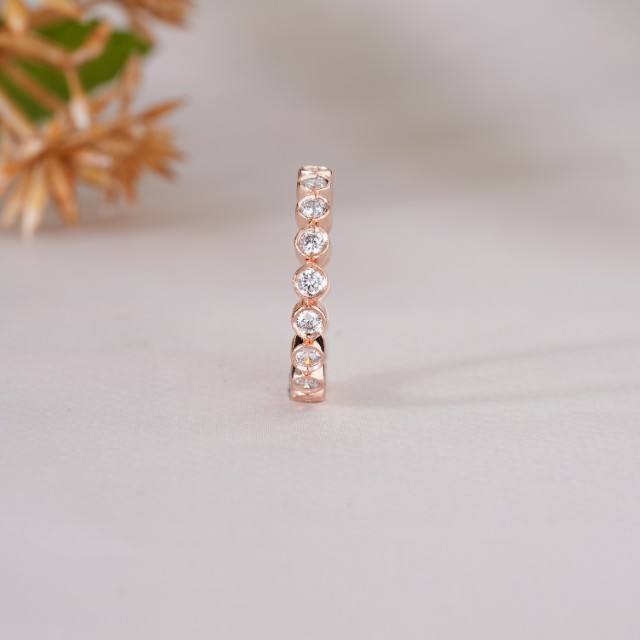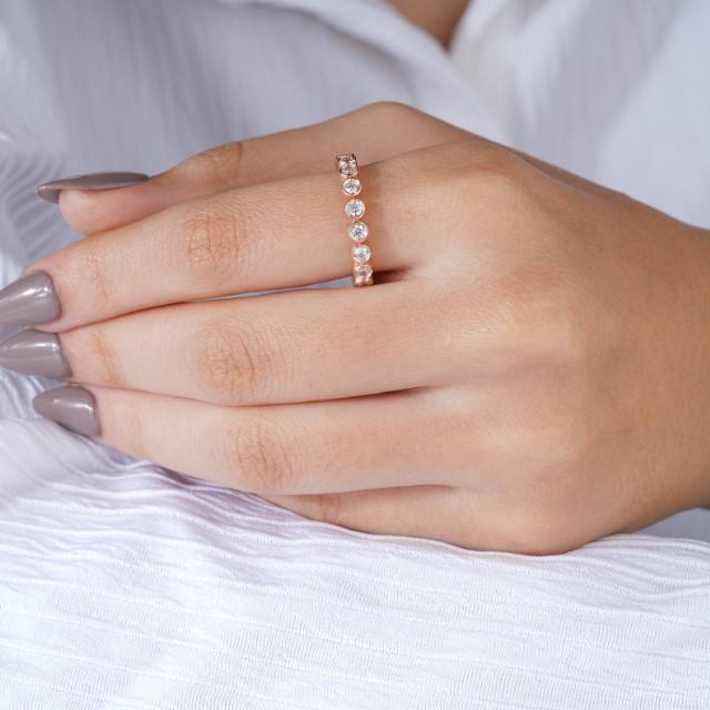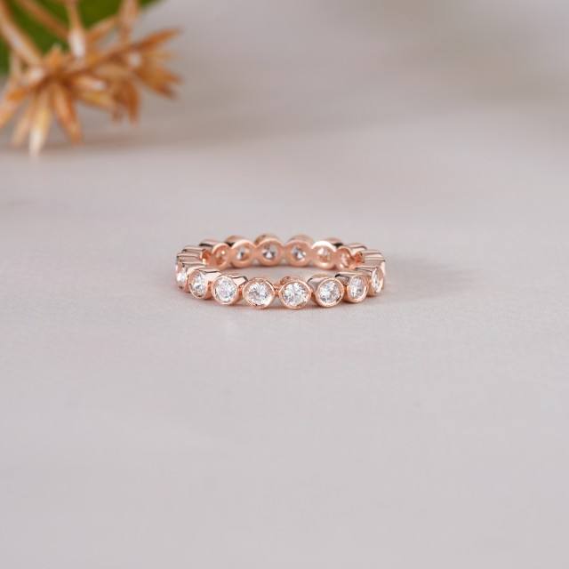Bague Éternité Or Rose avec Pierres Blanches Rondes Élégante Bague de Mariage pour Femme Cadeau d'Anniversaire Bijoux Fins