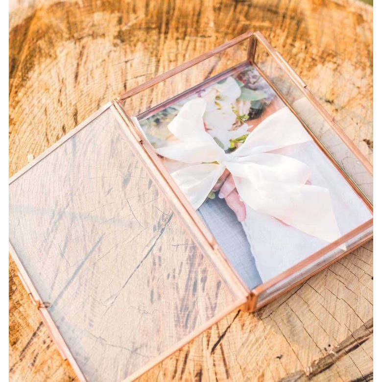 Boîte photo en verre or rose, cadre photo pour portrait, cadeau de mariage pour photographe