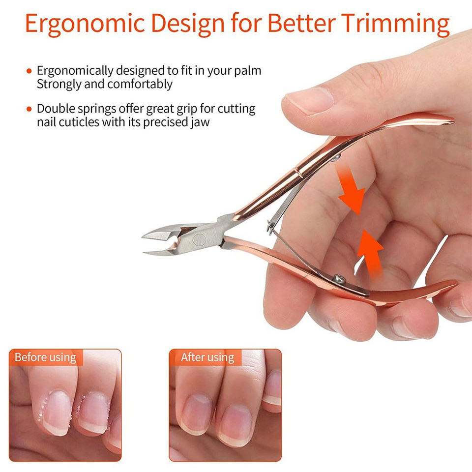 Coupe-ongles à manche en or rose, coupe-ongles à double ressort, lame tranchante en acier inoxydable allemand, pince à cuticules, outil de beauté écologique