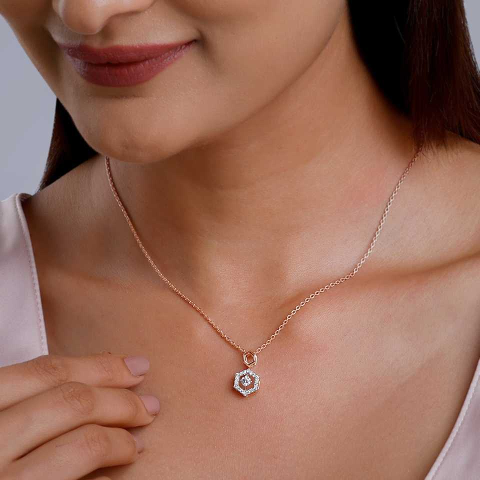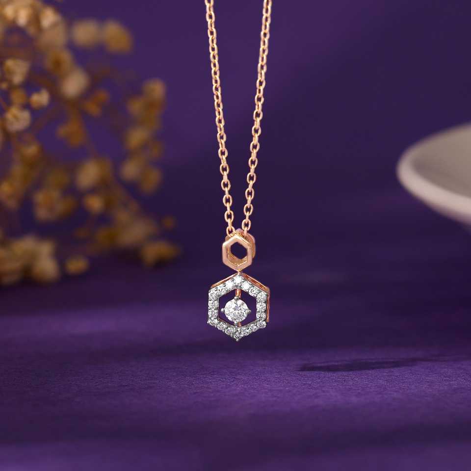Rose Gold Hexagon Diamond Pendant Elegant Charm for Fashion-Conscious Individuals