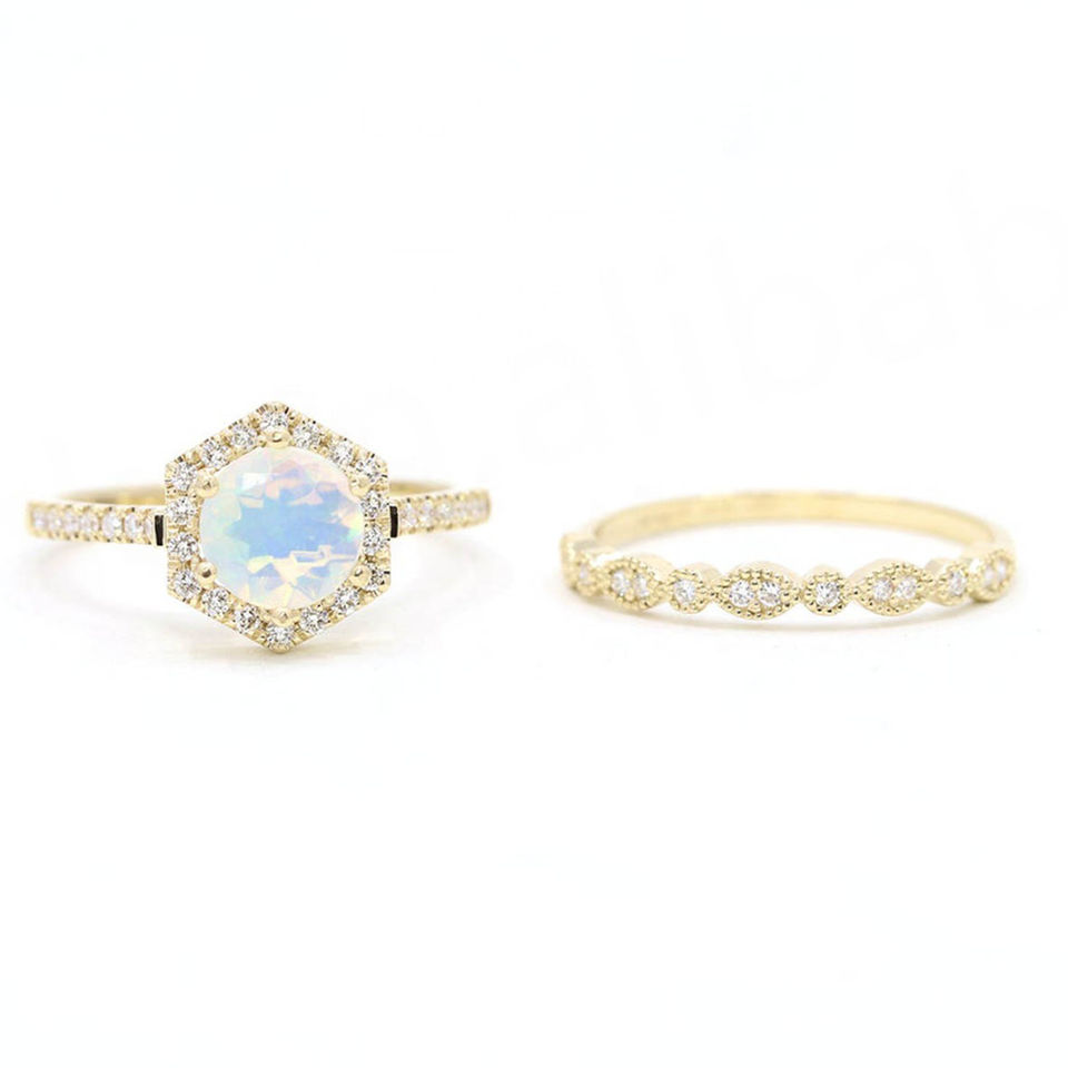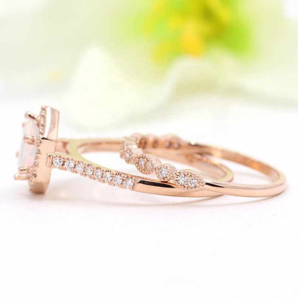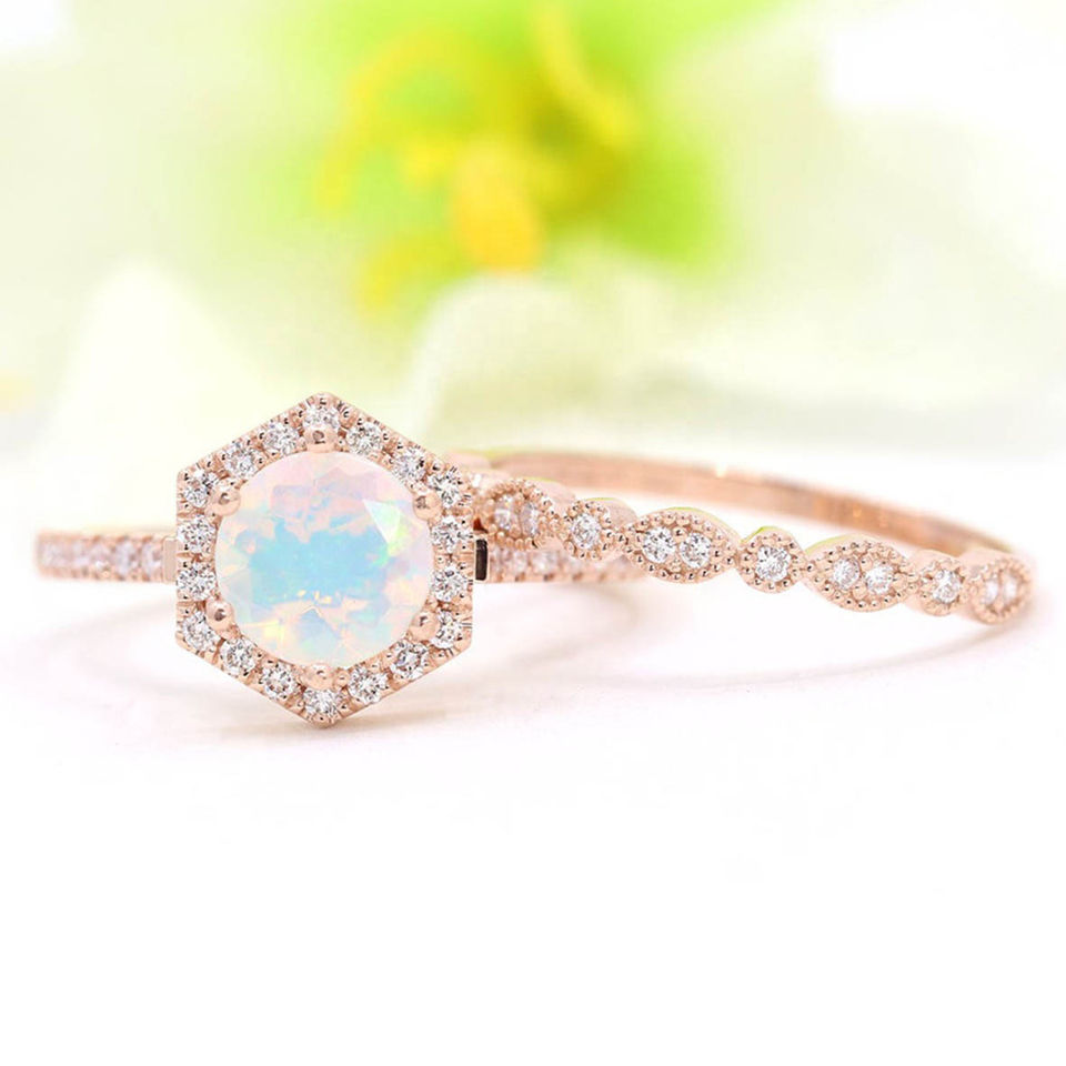 Ensemble de bague de fiançailles en opale:Ensemble de bague de fiançailles en opale