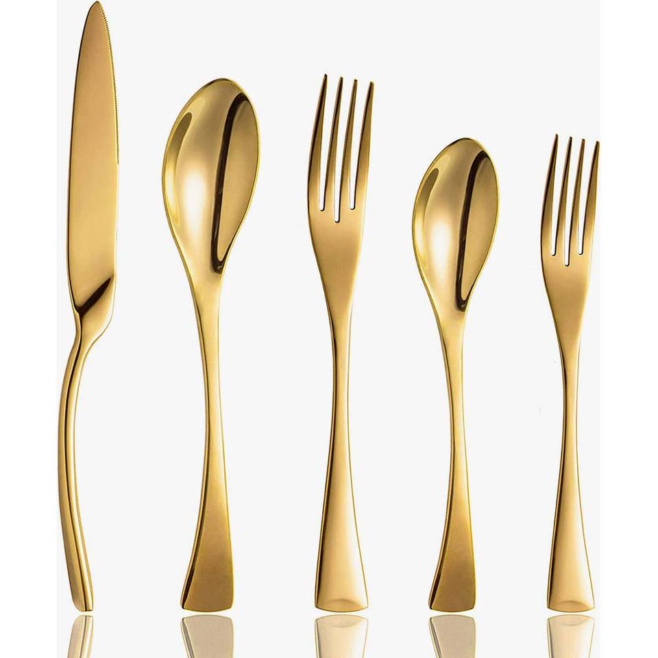 Couverts plats élégants en acier inoxydable au design royal avec poignée épaisse personnalisée en or rose mat