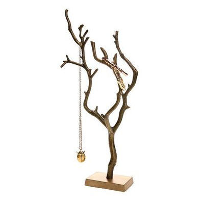 Arbre à bijoux en métal doré et Rose, support oiseau, bijoux