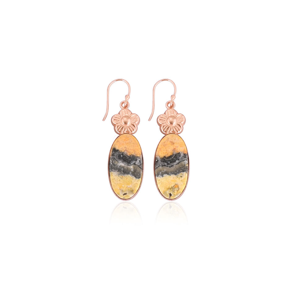 Boucles d'oreilles pendantes en laiton plaqué or rose, forme ovale, pierre précieuse, jaspe, bijoux en laiton, cadeau pour maman