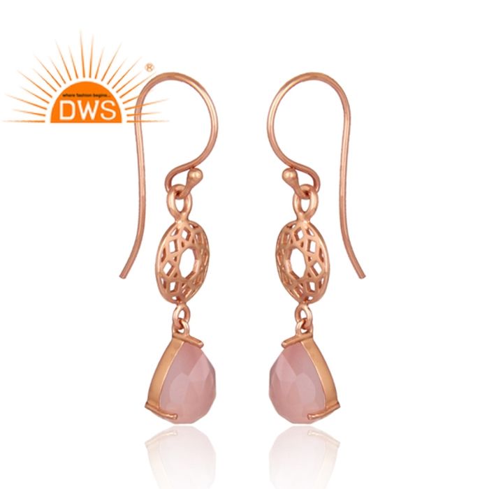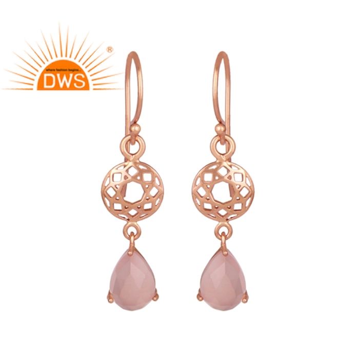 Boucles d'oreille en argent Rose plaqué or, fabrication de bijoux, belle pierre précieuse, calcédoine Rose, vente en gros