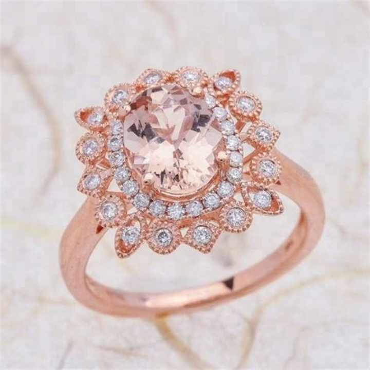 Morganite Stone Ring Jewelry Ring:6# 7# 8# 9#10#11#12