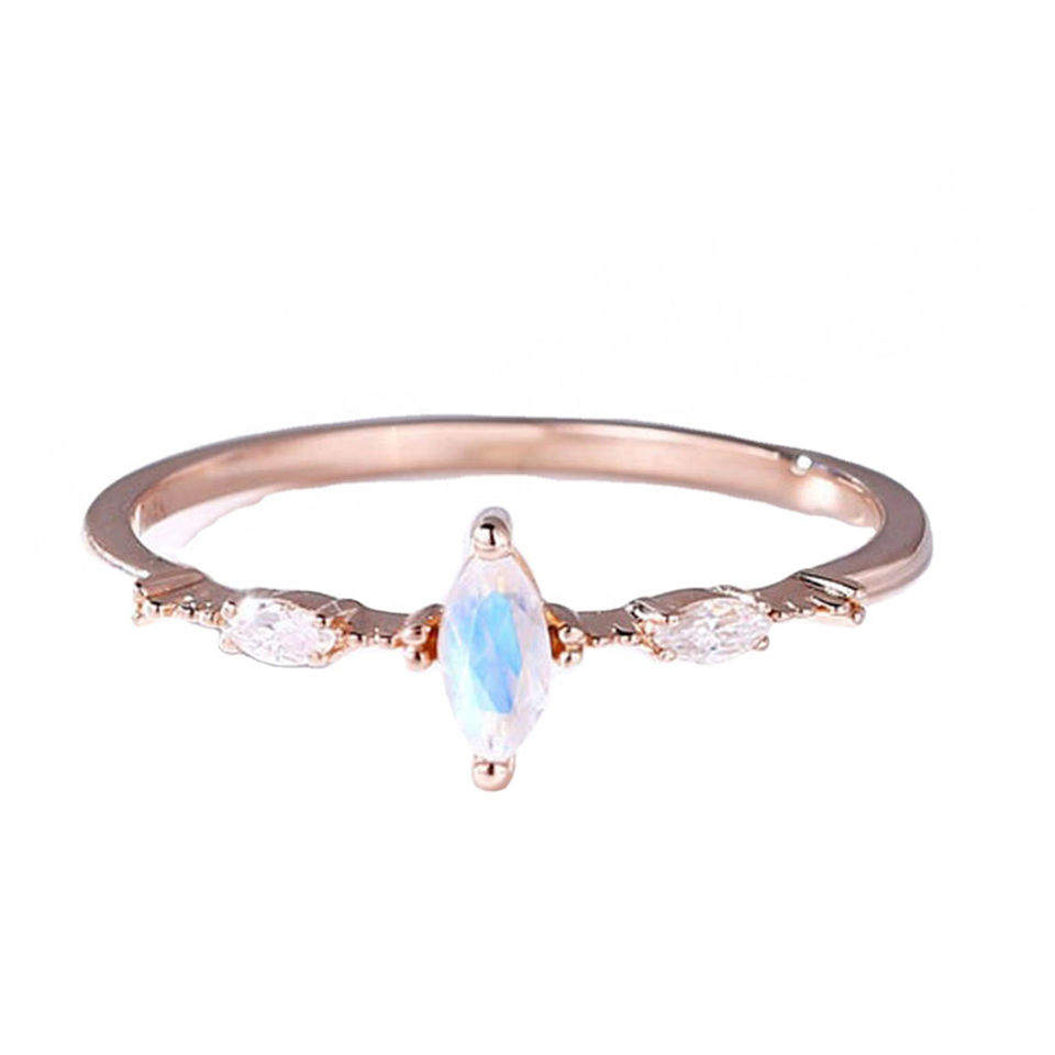 Bague de fiançailles en argent 925 plaqué or rose, bijoux pour femme, coupe marquise, anneaux en pierre de lune pour fille