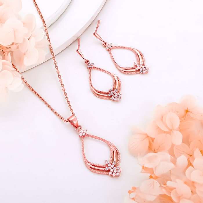 Ensemble de mode princesse en argent 925 or rose et boucles d'oreilles pendantes élégantes
