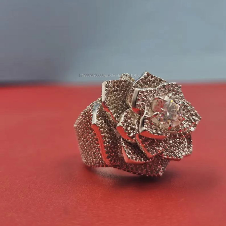 Bague Fleur en Grappe Plaqué Or Rose et Rhodium pour Femme et Unisexe, Bijou de Fiançailles, Mariage, Fête, Sertie de Griffes en Argent Sterling 925