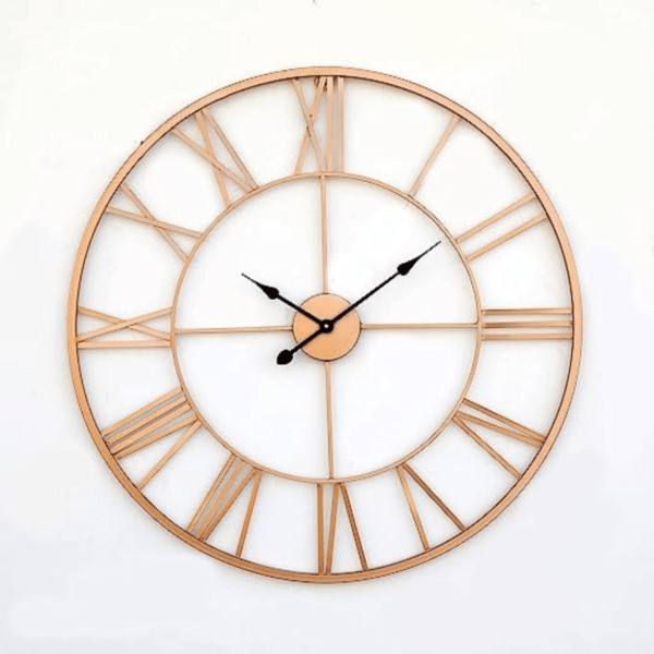Horloge murale en or rose avec chiffres romains, horloge décorative vintage minimaliste, design intérieur élégant