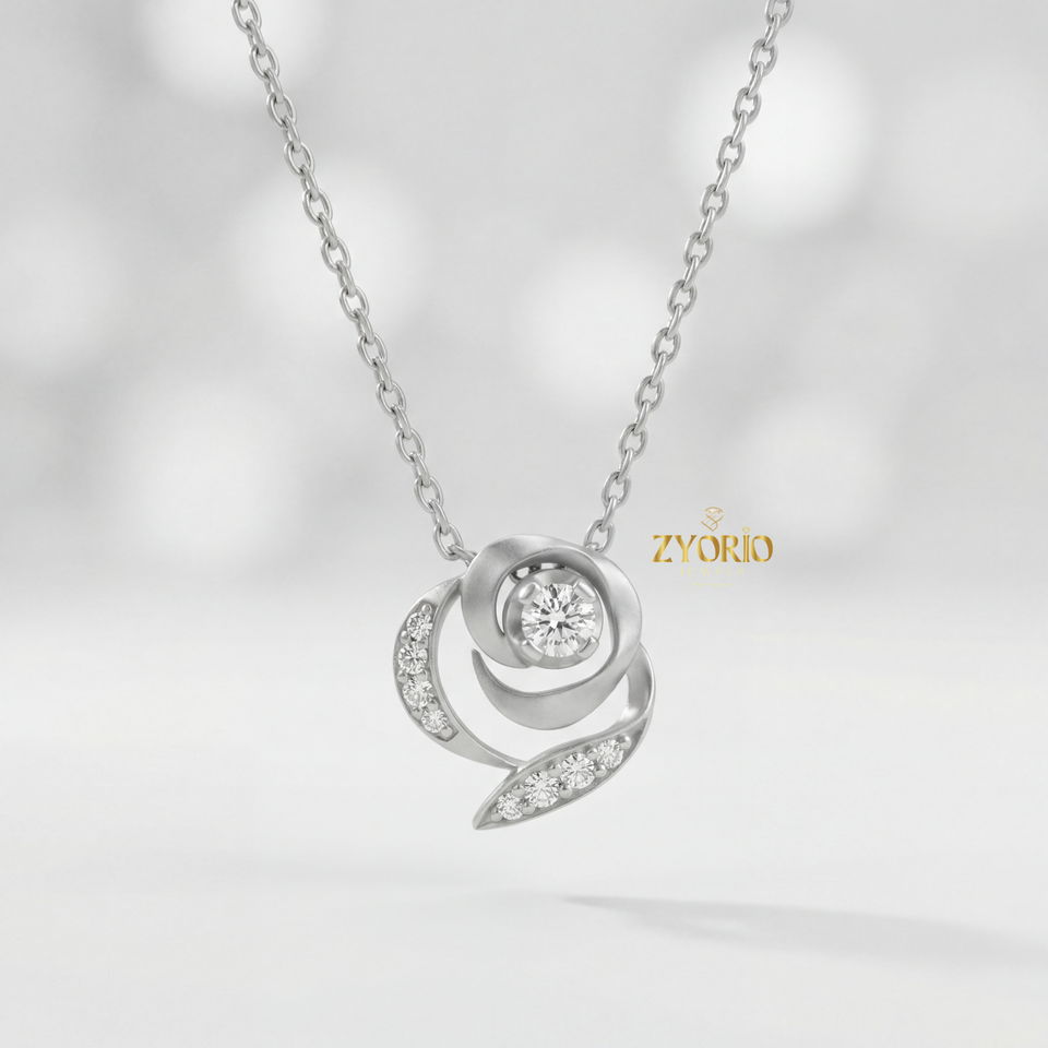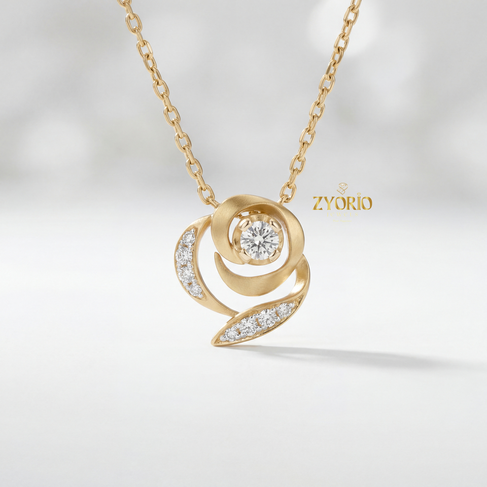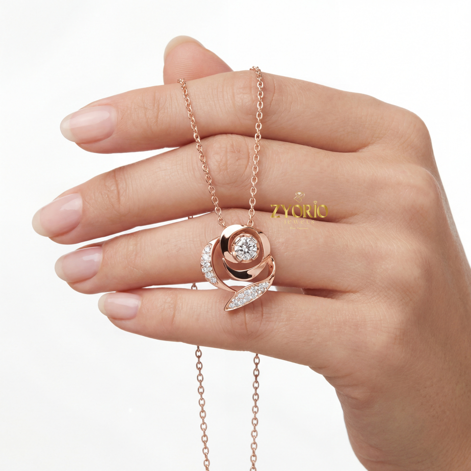 Collier pendentif en or rose et diamants pour femme, chaîne à maillons pour fiançailles, mariage, anniversaire et cadeau - Plaqué or de luxe