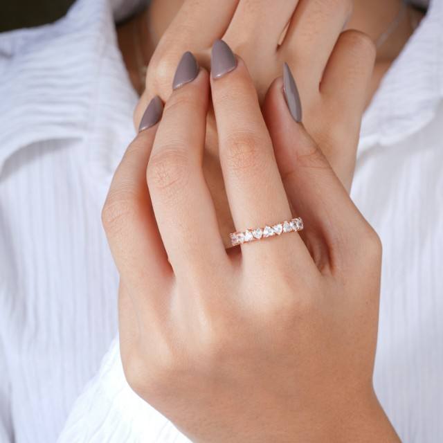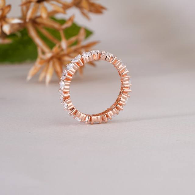 Bague Éternité en Or Rose avec Diamants Ronds pour Femme – Élégante pour Mariage, Anniversaire, Fiançailles, Usage Quotidien – Bijou Fin, Idée Cadeau