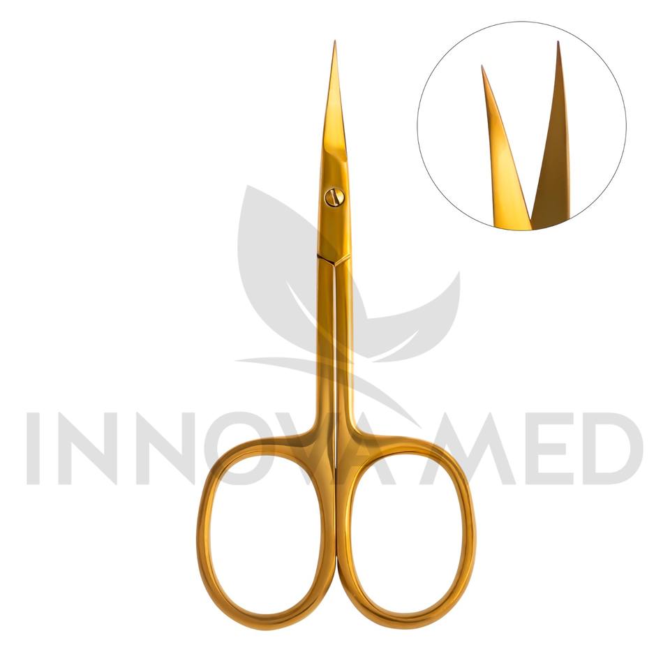 Ciseaux à sourcils en acier carbone incurvé et plaqué rose, durables, robustes, de haute qualité, pour femmes, salon de beauté, pour droitiers