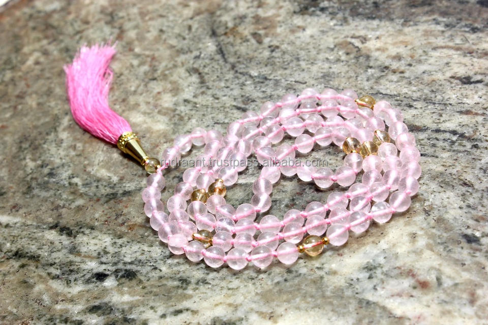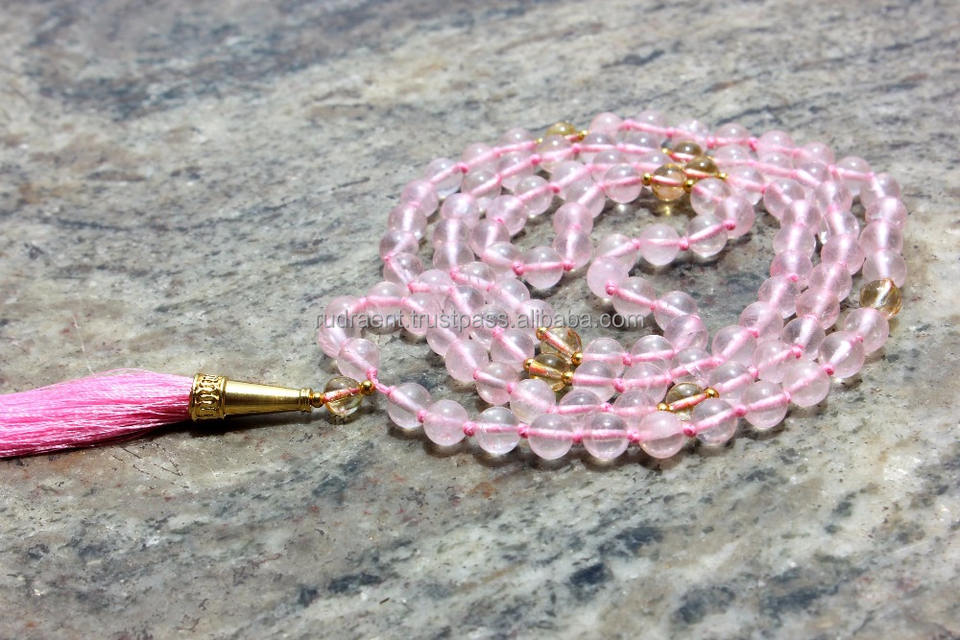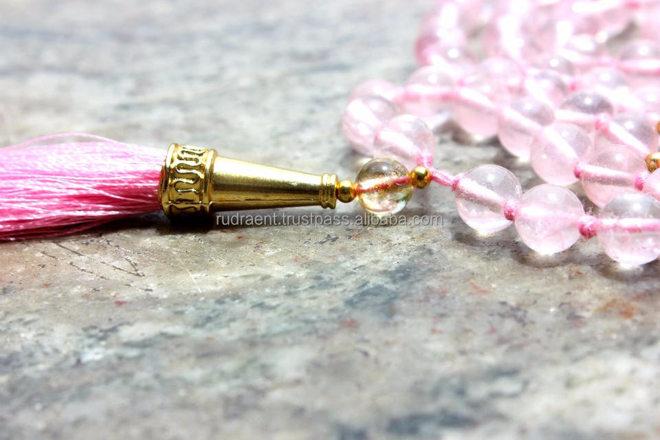 Quartz rose 108 collier de perles Mala pierres précieuses naturelles bijoux de mode pour les fêtes de méditation spirituelle cadeaux inspirés du bouddhisme