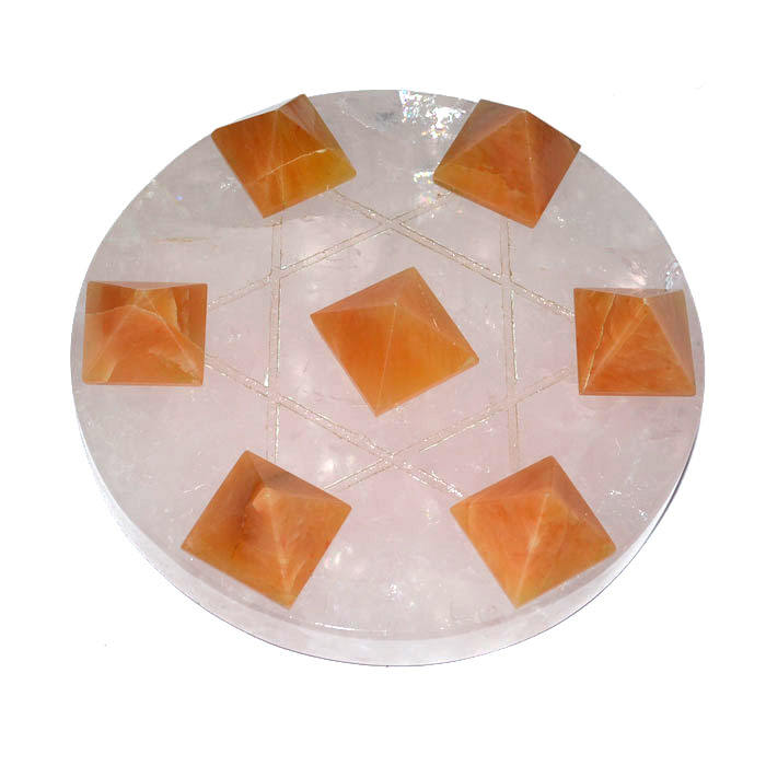Pyramide de Quartz Rose gold, 7 piéces en forme d'étoile de David